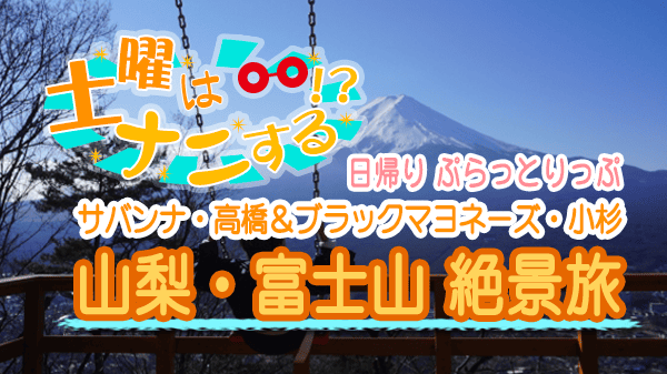 2025年3月15日放送の『土曜はナニする!?』は『日帰りぷらっとりっぷ』!今回はサバンナ高橋&ブラマヨ小杉が山梨・富士山の絶景旅へ!訪れたスポットや食べたグルメなど、紹介された情報をまとめました!詳しくはこちら!